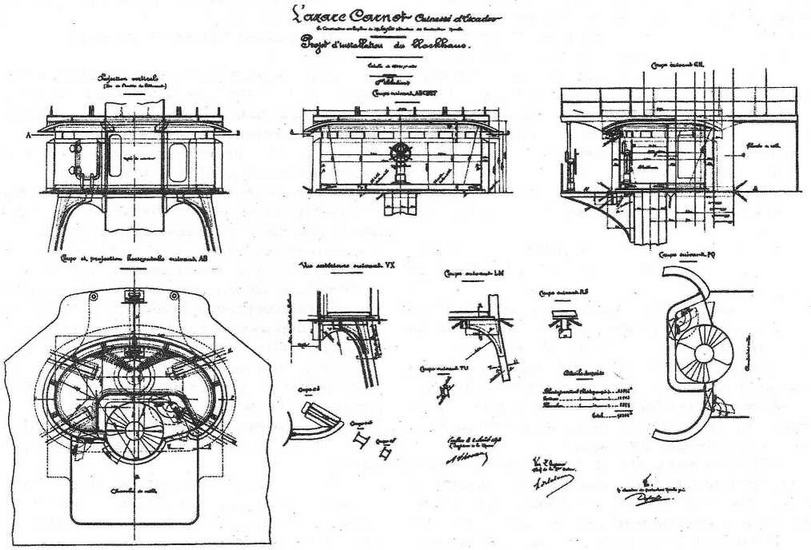 Чертеж проекта боевой рубки для броненосца “Карно ” предоставленный инженером Лом 2 августа 1892 г.