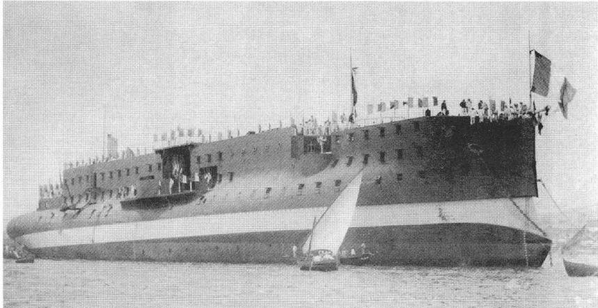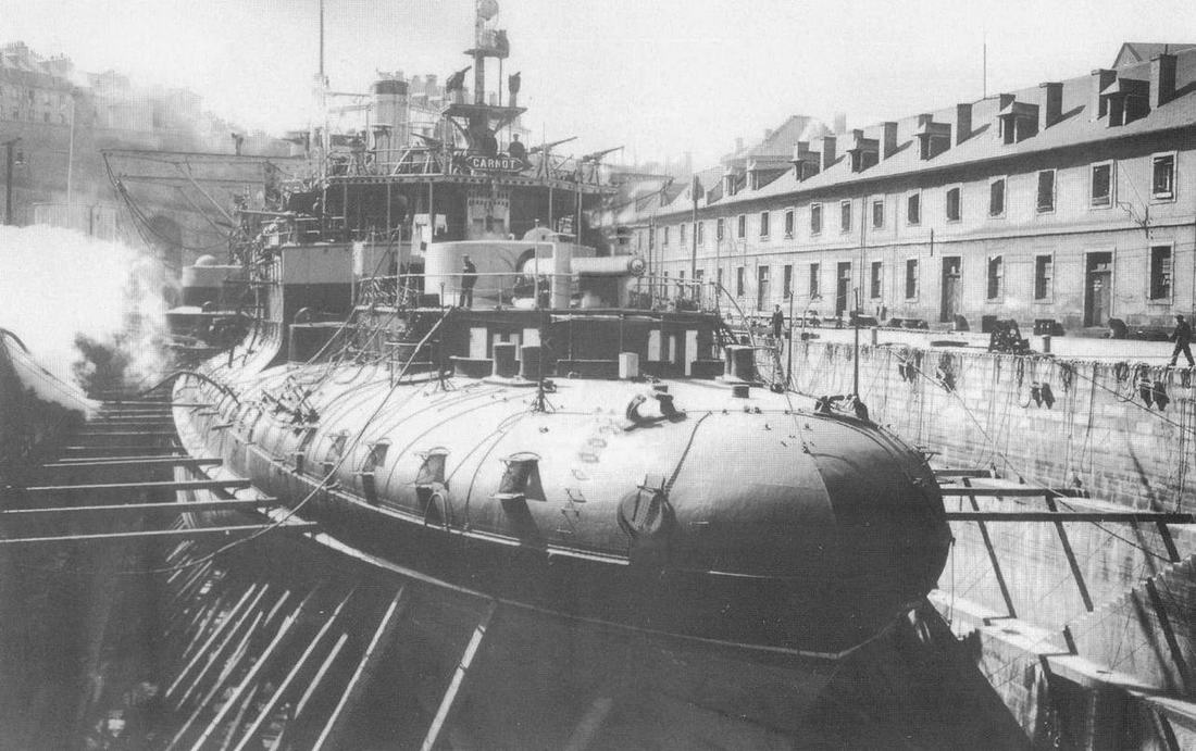 “Карно ” на достройке в 1895 г. (вверху) и в декабре 1898 г. во время ходовых испытаний.