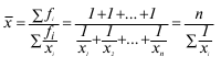 Если при использовании средней гармонической веса всех вариантов (f;) равны, то вместо взвешенной можно использовать простую (невзвешенную) среднюю гармоническую:
