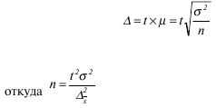 Уменьшение стандартной ошибки выборки (а следовательно, увеличение точности оценки) всегда связано с увеличением объема выборки. Поэтому уже на стадии организации выборочного наблюдения приходится решать вопрос о том, каков должен быть объем выборочной совокупности, чтобы была обеспечена требуемая точность результатов наблюдений. Расчет необходимого объема выборки строится с помощью формул, выведенных из формул предельных ошибок выборки , соответствующих тому или иному виду и способу отбора. Так, для случайного повторного объема выборки (n) имеем: