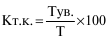 Коэффициент текучести кадров (Кт.к.) определяется делением численности работников предприятия, выбывших или уволенных за данный период (Тув.), на среднесписочную численность за тот же период Т (%):