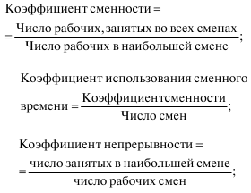 В статистике также анализируется использование сменного рабочего времени, для этого пользуются такие показатели: