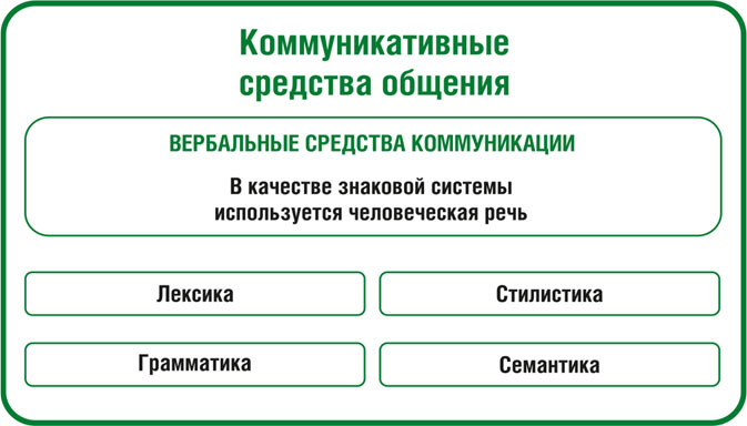 – вербальные средства коммуникации – речь, пара-и экстралингвистические системы (интонация, неречевые вкрапления в речь – паузы и т. п.);