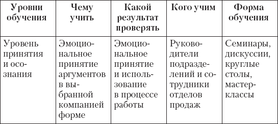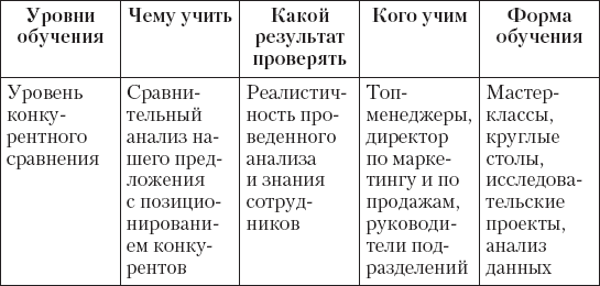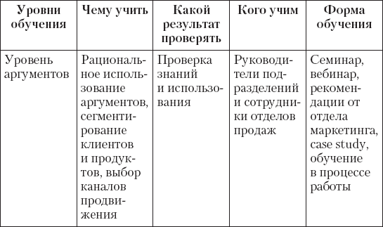 Эта пирамида развития создавалась с учетом системного взгляда на подготовку сотрудников отделов продаж. В ней описан процесс выбора и оттачивания аргументов, сегментирования клиентов, подготовки к переговорам и отработки поведения. Это прикладная часть обучения. В первую очередь отрабатывается содержательная часть – что говорим и кому. И в значительно меньшей степени – как мы говорим. Вопросы коммуникации и психологических аспектов переговоров не затрагиваются (оставим эту тему другим многочисленным авторам).