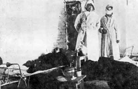 57. Врач П.Б. Хавкин и сестра милосердия А. Снежкова в изоляционном пункте