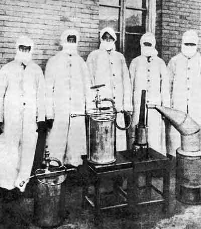 Организация и деятельность дезинфекционного отряда. Сформирование такого отряда в начале эпидемии оказалось вообще невозможным из-за отсутствия свободных врачей и дезинфекционного оборудования. Летучий отряд, проводивший дезинфекцию, не мог уделять этому делу должного внимания, так как был слишком занят транспортировкой больных и погребением трупов. Максимум, что он мог, это проводить дезинфекцию вывозимых трупов, а после завершения выезда — самих себя. Только 17 ноября, благодаря докладу доктора Петрова, на заседании подкомиссии врачей было принято решение организовать специальный дезинфекционный отряд во главе с врачом, состоящий из двух фельдшеров и 8 санитаров.