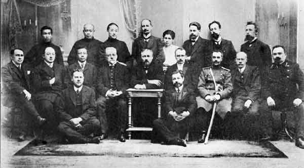 Е.Л. Дыновский, доктора Ф.А. Ясен-ский. С.Н. Предтеченский, Л.А. Ольшевский, Ву Лиен Те, В.М. Богуцкий и три английских врача (рис. 67).67. Врачи русской и китайской противочумных организаций во главе с профессором Д.К. Заболотным (Богуцкий В.М., 1911)