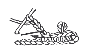 Бугорок . Вяжут из 5-ти столбиков с накидом на 1-й петле основания. Связав 5-й столбик, крючок вынимают из петли, вводят его в петлю 1-го столбика, поддевают только что снятую петлю и протаскивают ее сквозь петлю 1-го столбика.