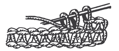 Выполняется столбиками с накидом. При вязке 2-го и всех следующих рядов крючок вводят спереди под обе основные петли. Каждый новый ряд начинают с 2-х воздушных петель (рис. 48).