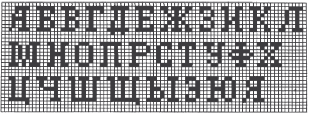 Ниже приведена схема вязания букв по сетке (рис. 46).