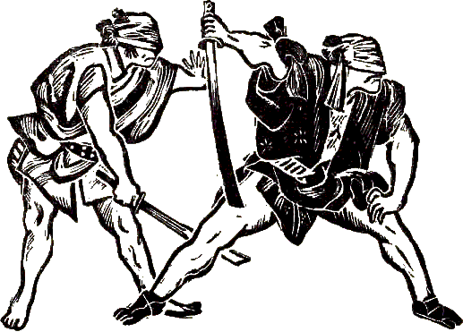 сверкающим, как белое пламя, мечом.При виде обнаженного меча Токуити вдруг почувствовал, что его руки и ноги обмякли и согнулись, и он нечаянно очутился на четвереньках и оказался в дальнем углу комнаты. Здесь он застыл неподвижно и почти без сознания.
