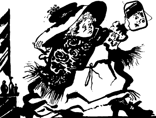 На этот раз Манечка уже с некоторым испугом открыла дверь. За дверью стояли Костя Палкин и Нинка Кукушкина. Их трудно было узнать. Костя был завёрнут в настоящую тигровую шкуру. По кафельному полу тянулся длинный, подбитый грязным белым шёлком, полосатый хвост. Из-под шкуры высовывались загнутые носки малиновых, бархатных, вышитых бисером, домашних туфель Костиной тёти Глафиры Андреевны.