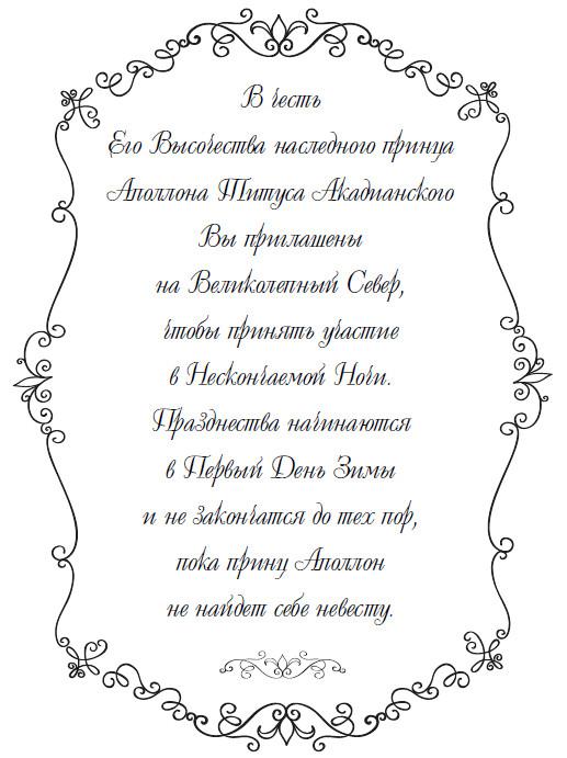 Чернила с металлическим отливом мерцали, словно еще не высохли – «или же к ним прикоснулась магия Севера». Эванджелина старалась не делать поспешных выводов и почти сразу потерпела неудачу. Она надеялась, что здесь ее поджидает счастливый финал, но при взгляде на это приглашение практически невозможно было представить, какой путь мог к нему привести.