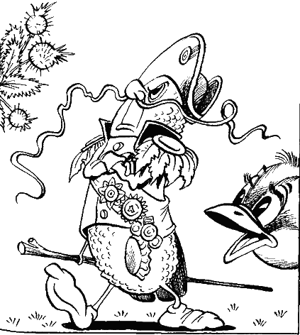Он все думал и думал, сидя под широким листом, что это он такой большой да зеленый? И наконец
