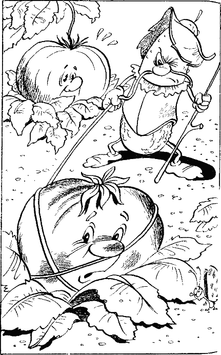 И долго еще продолжались торжества по случаю провозглашения нового государства на огородной грядке. Не будем их описывать. Поглядим, что делается в стране Помидории.