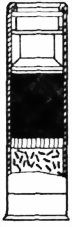 Снаряжается в бумажную или пластмассовую гильзу, капсюль «Жевело»; массу пороха «Сокол», которая указана в инструкции или на банке и является максимальной для данной партии, следует уменьшить на 0,2 г при использовании патронов летом и на 0,1 г при использовании патронов зимой. На порох досылается картонная (плотная) прокладка толщиной 2,5–3 мм; диаметр прокладки должен быть больше внутреннего диаметра гильзы на 0,1 мм; войлочный осаленный пыж толщиной 13–15 мм и добавочный войлочный пыж нужной толщины (можно разрезать по диаметру на четыре равные части, сложить по линиям разреза и вставить в гильзу); картонная прокладка толщиной 0,3–0,5 мм. При полиэтиленовом пыже вес пороха «Сокол» 2,2 г. Пулю повернуть хвостовиком вверх и заполнить полость сухими, мелкими древесными опилками, уплотняя их пальцем. Опилки служат амортизатором при выстреле и не дают «влипать» пыжу в хвостовик пули. Опилки можно заменить пробковой крошкой. Заливать полость хвостовика воском или парафином не следует. Для того чтобы опилки не высыпались, гильзу следует надевать на хвостовик сверху до упора пули в пыж. Затем дульце гильзы завальцовывается.
