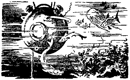 Но море крепко хранит свои секреты и нелегко расстается с ними. Много отчаянных смельчаков заплатили своей жизнью за попытки поглубже проникнуть в морскую глубь. Человек изобрел водолазный колокол, скафандр, под- водную лодку. Но этого было слишком мало для беспрепятственных путешествий в подводном мире на сколько-нибудь значительной глубине. Ученые могли только мечтать о таких условиях наблюдения жизни морей и океанов, какие открывал чудесный корабль «Наутилус», с детства знакомый нам по известному роману Жюля Верна. Капитан Немо мог опустить «Наутилус» на любую глубину, открыть металлические шторы иллюминаторов, осветить море электрическим прожектором, — и перед профессором-океанографом Пьером Аронаксом и его друзьями открывалось чудесное зрелище подводного мира.