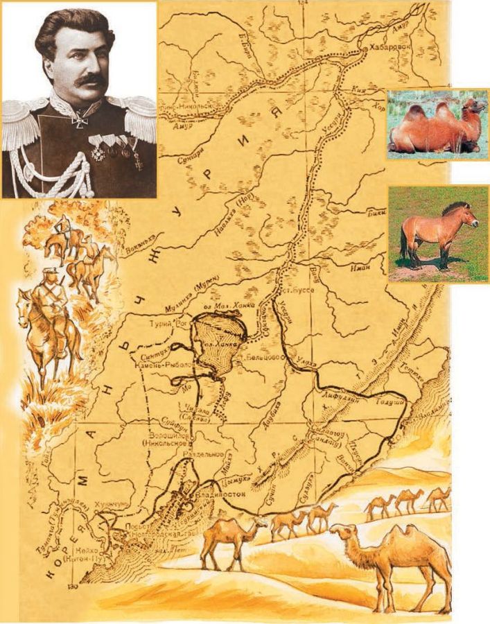 Десять экспедиций предпринял Николай Михайлович Пржевальский. Им было пройдено 30 тысяч километров. Будучи военным учёным-географом, он проложил все свои маршруты на карте. Наряду с этим Пржевальский вёл метеорологические наблюдения за погодой, климатом. Он собирал коллекции по зоологии, ботанике, геологии. Учёный открыл и описал дикого верблюда, дикую лошадь, получившую впоследствии название по его фамилии. Исследования Николая Михайловича положили начало основательному изучению Центральной Азии. Русское географическое общество учредило серебряную медаль имени Н. М. Пржевальского.