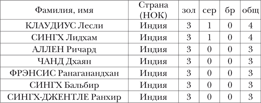 МУЖЧИНЫ (не менее 3 золотых медалей)