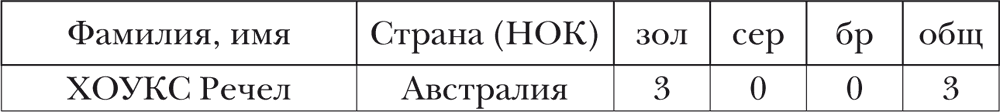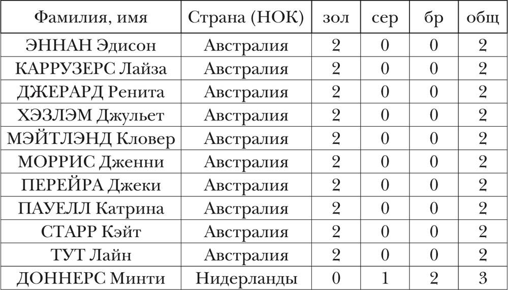 ЖЕНЩИНЫ (не менее 2 золотых медалей или 3 медалей в целом)