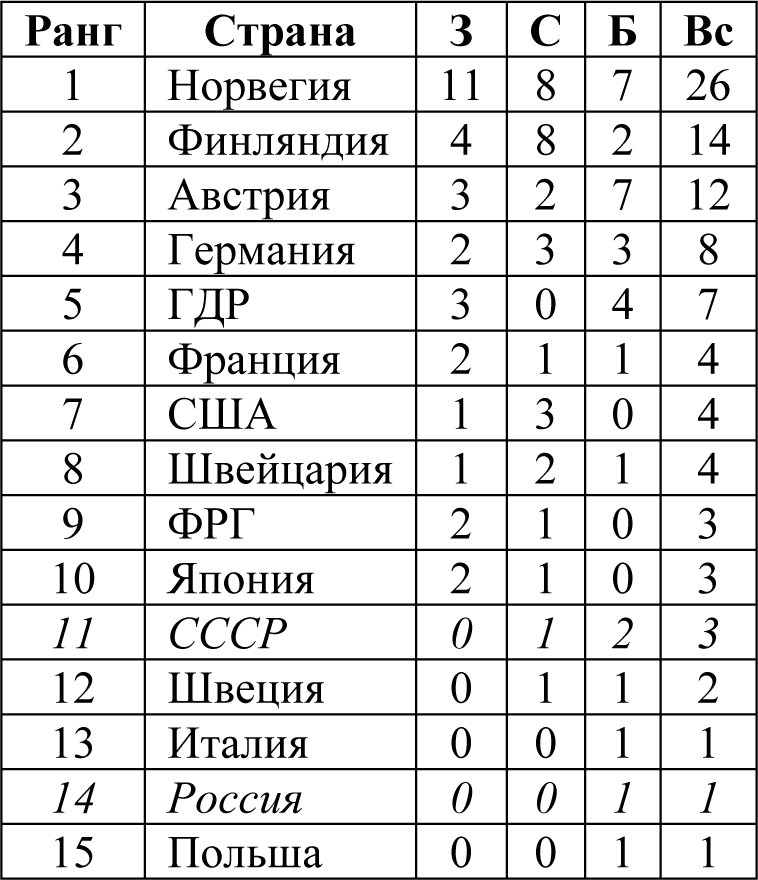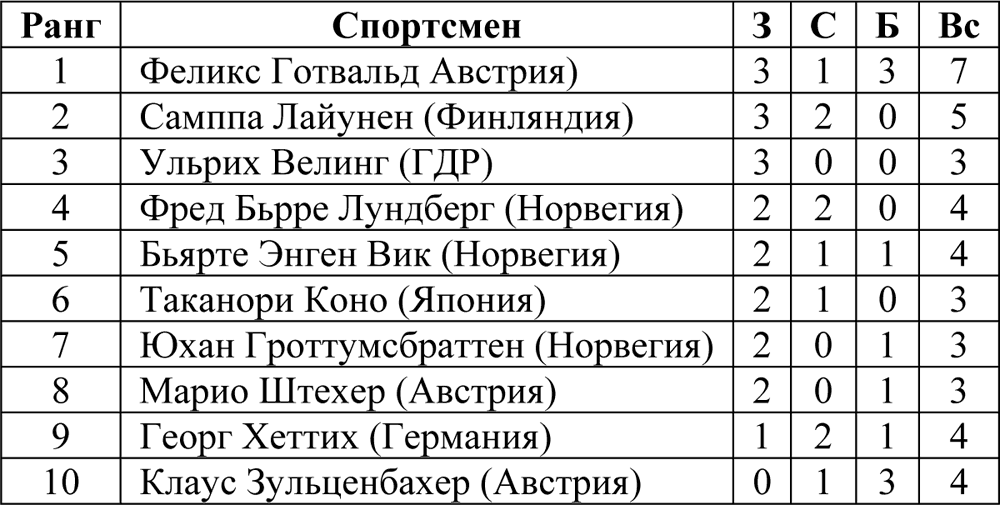Спортсмены и медали 1924–2010 (не менее 2 золотых или 4 медали в целом)