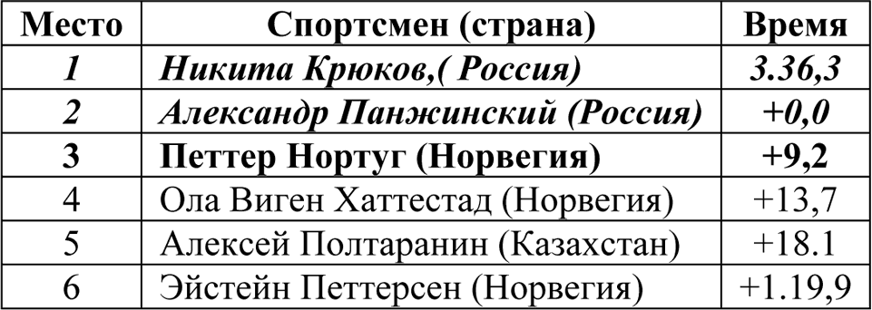 Для Нортуга это первая индивидуальная золотая медаль Олимпийских игр, для Тайхмана – первая индивидуальная медаль, Олссон ранее на играх в Ванкувере выиграл золото в эстафете и бронзу в дуатлоне.