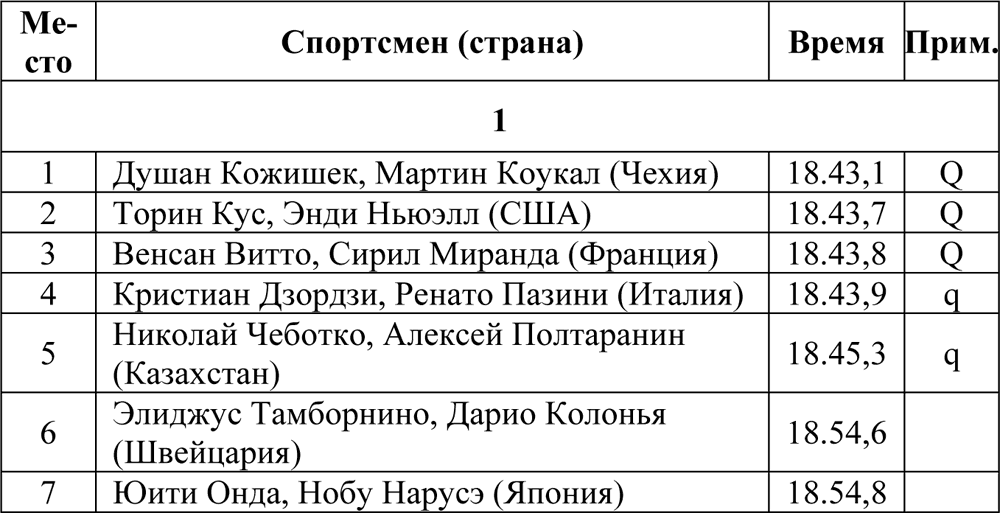 Полуфиналы. Команды, вошедшие в тройку лучших в каждом из полуфиналов напрямую попадают в финал (Q), еще 4 команды проходят в финал по лучшему времени (q).