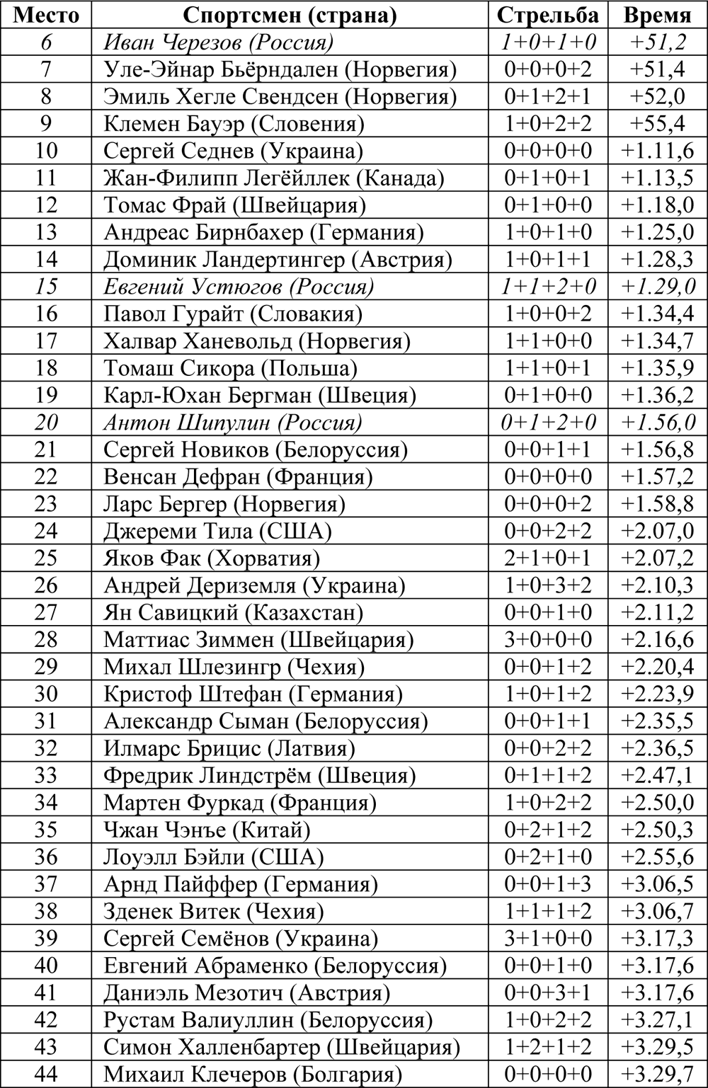 Победитель спринта француз Венсан Жё занял 60-е место, а победитель гонки преследования швед Бьёрн Ферри стал 42-м.