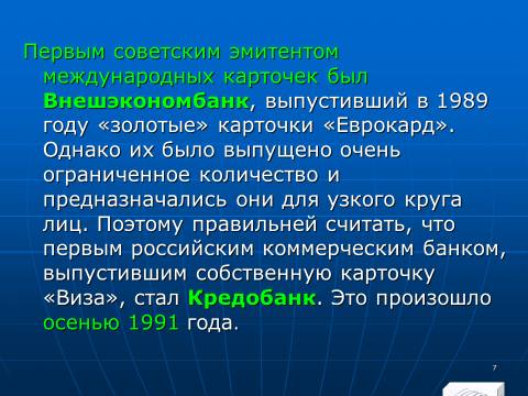 Тема №7 «ОПЕРАЦИИ С БАНКОВСКИМИ КАРТАМИ»