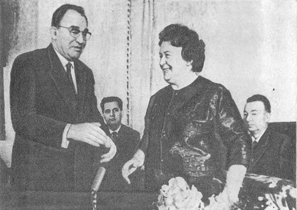 11. Вручення письменниці Державної премії УРСР ім. Т. Г. Шевченка: О. Є. Корнійчук, О. Т. Гончар, Ірина Вільде, А. С. Малишко. Київ, 1965 р.