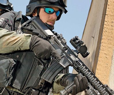 Пример оснащения нарезного карабина для практической стрельбы. Стрелок установил на него два оптических приспособления – классический оптический прицел для поражения дальних мишеней, а сверху над ним коллиматор для стрельбы на небольшие дистанции