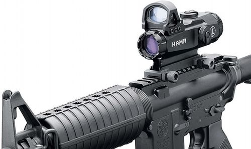 Коллиматорные прицелы используются для оснащения армейского оружия. При этом предпринимаются попытки соединить в одном устройстве классический оптический прицел и коллиматор (на фото внизу). В данном случае возможность использования штатных механических прицельных приспособлений отсутсвует