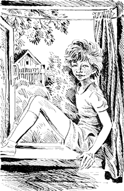 Фаддейка обрадованно взгромоздился в оконный проем и вдруг встал на подоконнике на голову, а прямыми, как трости, ногами в «языкастых» кедах лихо уперся в верхний карниз. Майка опять съехала на грудь.