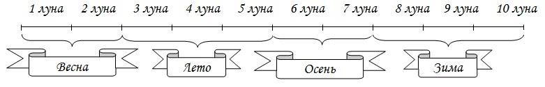Год, луна, день— в году 10 лун (300 дней), в луне — 30 дней, в дне — 25 оборотов (название пошло еще из древности, когда время измерялось оборотами песочных часов), в обороте — 100 минут, в минуте — 100 секунд. День условно делится на три части — утро (с 6:00 до 10:00), день (с 10:00 до 16:00) и вечер (с 16:00 до 20:00). На Вергилии XIV существует четыре сезона — весна, лето, осень и зима. Каждый новый год принято отсчитывать с первого дня весны — дня, в который, по преданиям, Вергилию XIV сотворил Всемогущий. Исторически сложилось так, что весна начинается в первый день первой луны (у лун нет названий, они просто нумеруются с первой по десятую) и длится до тридцатого дня второй луны. Лето длится в течение третей, четвертой и пятой луны, осень — шестой и седьмой, зима — восьмой, девятой и десятой.