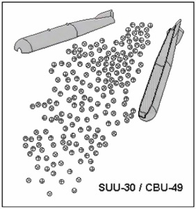 В Ираке в 1991 г., а затем и в Югославии в 1999 г. американские ВВС, авиация ВМС и КМП широко применяли кассетную авиабомбу «Rockeye» (модификации СBU-99/В, СBU-99 А/В, СBU-100В, СBU-100А/В, Mk20/Mod 3, Mk20/Mod 4 и Mk20/Mod 6), снаряженную 247 кумулятивно-осколочными суббоеприпасами Мк118 (модификации Mod-0, Mod-1 и VECP).