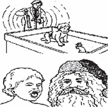 Рис. 2. Уотсон и его сотрудница Розали Рейнер провели опыты на шестимесячном младенце по имени Альберт. Как и все дети, он совершенно не боялся пушистых зверьков. Напротив, когда ему показывали белую лабораторную крысу, он был просто в восторге. Тогда исследователи начали сочетать предъявление крысы с резким звуком, что вызывало у ребенка плач и крики. Как и ожидалось, после нескольких опытов уже сам вид крысы стал вызывать у малыша плач. Так был сформирован условный рефлекс страха. Ребенка научили бояться белых пушистых предметов. Этот «условный страх» в результате генерализации вскоре распространился на все предметы с белым мехом, включая Деда Мороза.