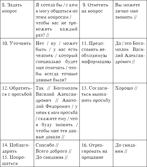 Рассмотрим далее некоторые типовые тактики телефонной коммуникации, которые часто встречаются в сфере делового общения.