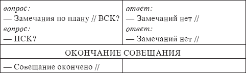 В ходе оперативного совещания не бывает докладов и длительных выступлений, а осуществляется обмен мнениями. Селекторное совещание не требует ведения протокола и наличия повестки дня, поскольку основные коммуникативные цели такого совещания – получение текущей информации и ее оценка.
