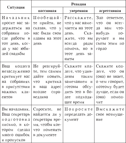 10. Ознакомьтесь с таблицей, в которой представлены различные поведенческие модели участников делового общения. Составьте и запишите диалоги по каждой предложенной в таблице ситуации. Используйте формулы делового речевого этикета.