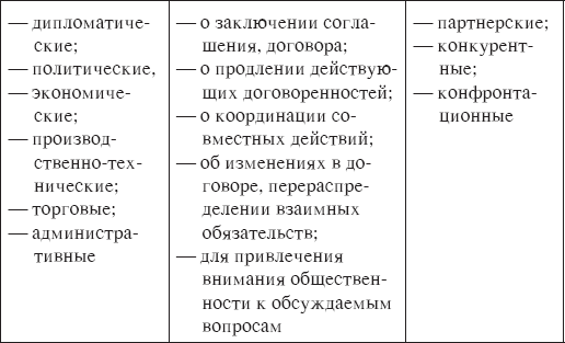 Существуют различные подходы к описанию переговоров. Основываясь на литературе по деловой риторике, типологию переговоров можно представить в виде схемы: