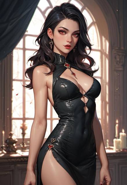 Нацепив зауженное черное платье вместо обычного наряда горничной, девушка встала напротив меня и покружилась. Все же такие наряды ей идут куда больше, нежели строгие. Я специально обновил гардероб для этого дня. Надо сказать, даже немного перестарался, придав вампирше изумительный облик.