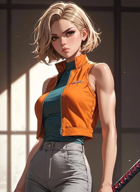 Поднявшись, девушка восстановила тело, подобрала меч и усмехнулась.