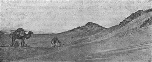 Весь следующий день мы шли сначала по этим пескам, а затем поднимались по пьедесталу Тяньшаня, представлявшему то песчаную, то глинистую почву, усыпанную галькой и щебнем и поросшую саксаулом, который по мере подъема мельчает и превращается из деревьев в кусты. С высоты пьедестала было видно, что пески, ограничивающие с югозапада оазис Цзинхэ, образуют в общем высокий увал, вытянутый с югоюговостока на северосеверозапад