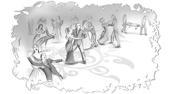Первым упал придворный в черном костюме. Он уже был в подпитии и приземлился на кушетку, поэтому удивления ни у кого не вызвал. Вторым генерал и его пышная дама. Затем к полу устремились три фрейлины королевы, какой-то барон, графиня, правитель Залесья, его защитник-маг, знакомый министр с супругой и подвернувшийся под руку лакей. Он рухнул как подкошенный и громче всех – зацепил стол с бокалами и наполнил зал звоном разбитого хрусталя. Следом взвизгнула скрипка – это я проплыла мимо оркестра, не забыв отметиться и там. Надо сказать, дворцовая прислуга оказалась проворней, чем я ожидала. Скрипач не успел коснуться паркета, а они его уже подхватили и понесли.