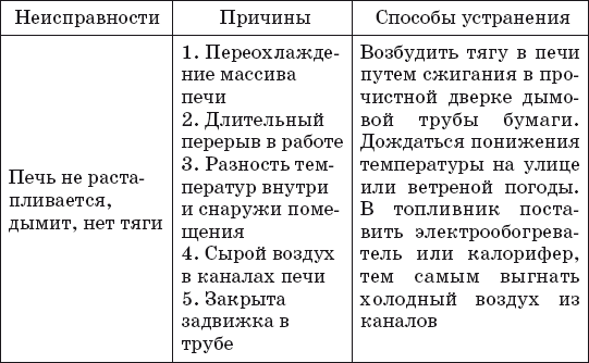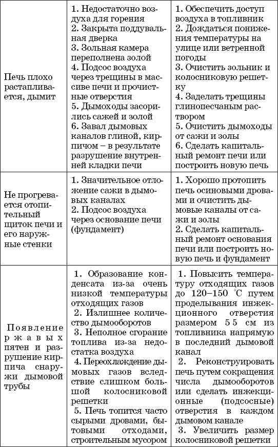 Неисправности наиболее часто встречающиеся при работе очагов и способы их устранения