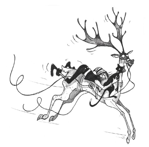 Таким образом, я не видела иного способа успокоить Блитцена, схватить поводья и сгрести в охапку Капитана Сажу, кроме как прыгнуть оленю на спину.