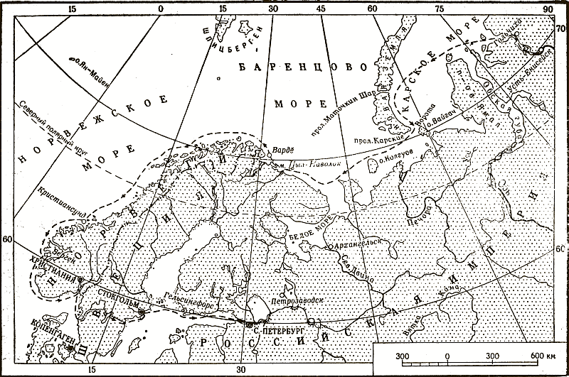 Мысль Петерманна о существовании в этом районе свободного от льдов моря и о возможности прохода к полюсу на обычном корабле как будто подтверждалась удачными плаваниями в этом районе русских и норвежских промышленников.