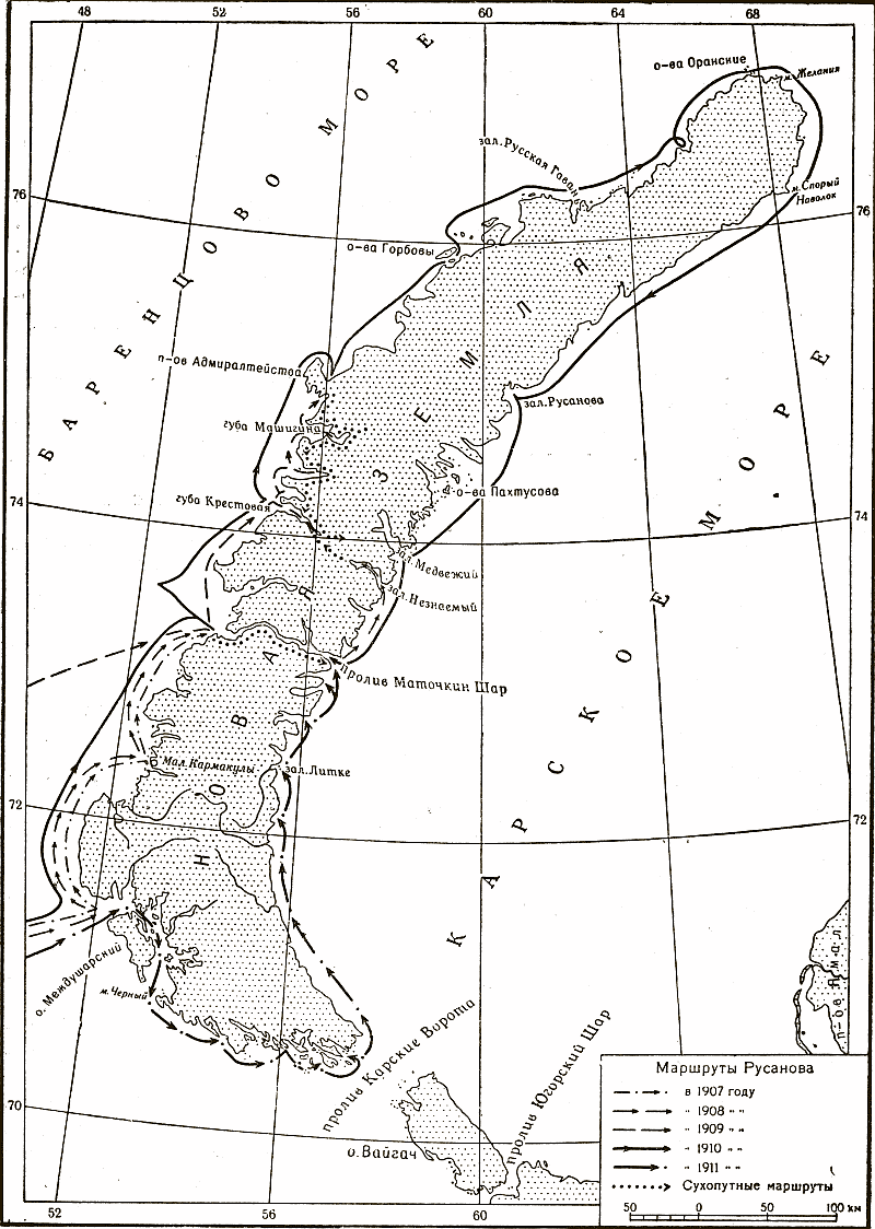 Плавания Русанова у Новой Земли (1907, 1908, 1909, 1910, 1911).