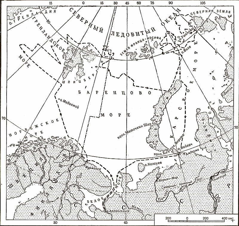 Между тем достаточно взглянуть на карту Северного морского пути, чтобы увидеть, что моря Карское, Лаптевых, Восточно-Сибирское и Чукотское, через которые проходит Северный морской путь, являются не морями в полном смысле этого слова, т. е. не полузамкнутыми бассейнами, а лишь обширными заливами Северного Ледовитого океана. Все они широко открыты на север, и нет препятствий для того, чтобы льды, образовавшиеся в этих морях, выносило в Арктический бассейн и, наоборот, чтобы льды Арктического бассейна вносило в эти моря. Уже из этого понятно, что режим льдов окраинных морей Советской Арктики в сильнейшей степени связан с режимом льдов Арктического бассейна. Эти рассуждения еще более применимы к решению вопросов об общей циркуляции атмосферы и других географических проблем.