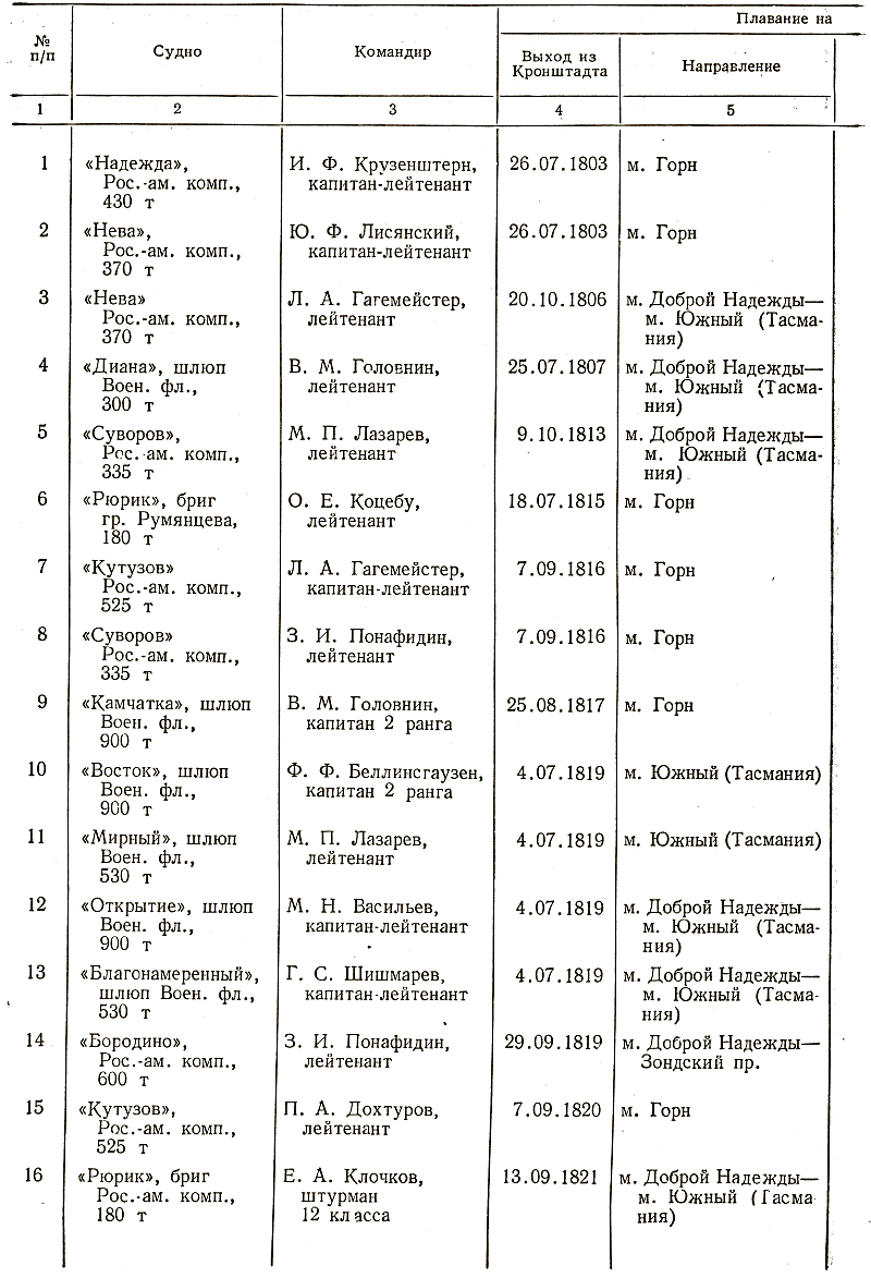 Кругосветные и полукругосветные плавания русских парусных судов